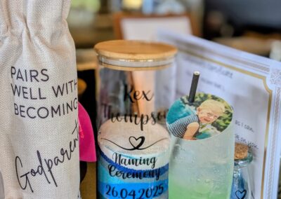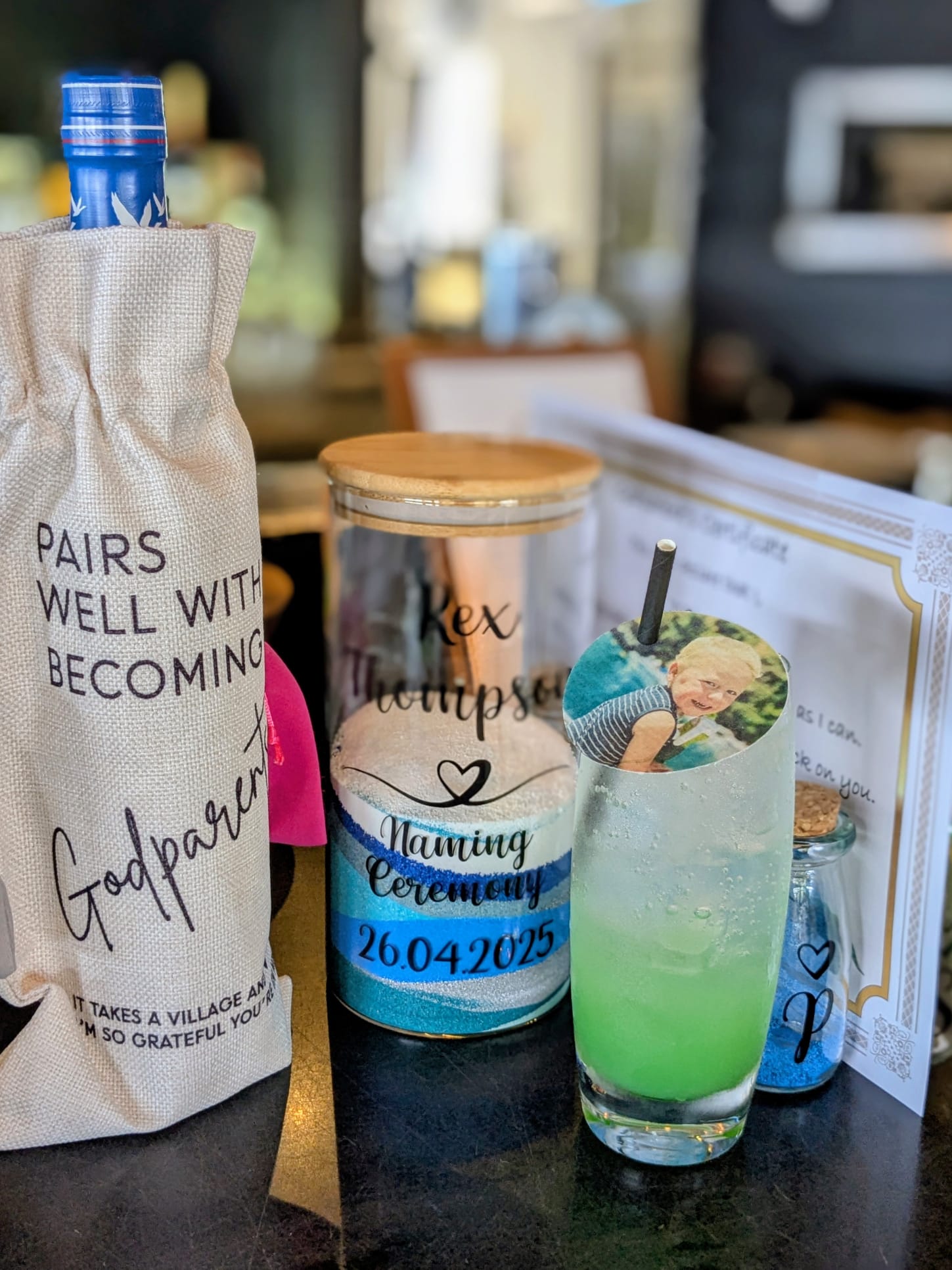 And R, without prompting, came and stood at the front with each of his Godparents as they added their own coloured sand to his special glass jar.