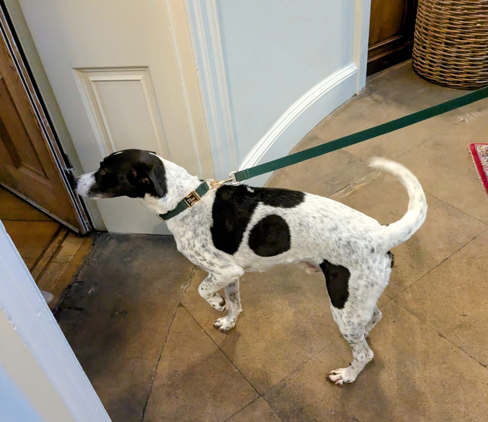 James and Olivia, their bridesmaids, best men and best four- legged friend, Klaus, perfectly captured by @rosiemaykellyphotography